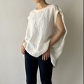 ・コクーンシルエット(まゆ型)のゆったりブラウス。