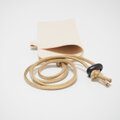 キャンプなどで使われるテント用のパラコード紐のヌメ革ナチュラルカラー縦型めがね入れです。