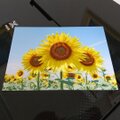 太陽の光を浴びて元気いっぱいの「ひまわり」達の「笑顔」を出来る限り落とさず表現するため、サイズはフチなし2L判横にさせて頂きました。