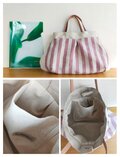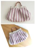淡いグレープ色のストライプリネンで、ワンタック バッグを作りました。