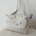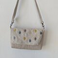 フラップ(ふた)をイギリスの刺繍インテリアファブリックを使ったショルダーバッグです。