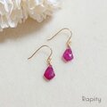 ファンシーカットされた深みのある天然石ルビーのピアスです。