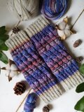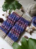 幸せの青い鳥の羽根のような色の、手編みの短めのスパイラル編みレッグウォーマーです。