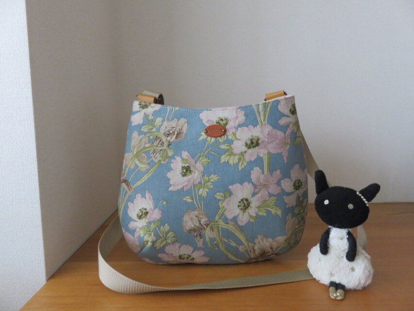 YUWAの花柄リネン生地を使っておにぎり型ショルダーバッグを作りました。