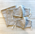 ライトフラックスカラー ナチュラルリネンのエアーマスクです。少し厚めで、光沢のある素敵な生地です。こちらの「リネン サイドギャザーワンピース」と同じ生地になります。