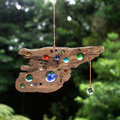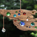 窓辺の風を受けながらゆらゆら揺れるビー玉の埋め込まれた流木とサンキャッチャーの光の演出をお楽しみください。