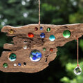 流木にビー玉をはめ込んで作りサンキャッチャーを付けています。