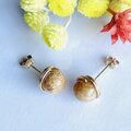 フォッシルコーラル 1粒ピアス 14kgf