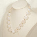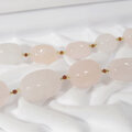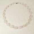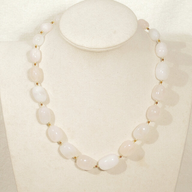大粒で光沢の綺麗なローズクォーツのネックレスです。ローズクォーツの間に小粒のヘソナイトガーネットなどを挟む事で、動きがスムーズなネックレスになっています。