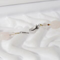 クラスプのメッキはロジウムです。ロジウムはプラチナと同じ白金族の希少金属(レアメタル)です。シルバー色の貴金属の中では、一番輝きが強く、美しい鏡面光沢が得られます。とても硬く、指の指紋や皮脂などによる汚れが付きにくいため、傷や曇りを防止・軽減する効果があります。とても安定した金属のため、空気中や人の息の成分と反応して、顕著な黒ずみを起す事もありません。
