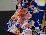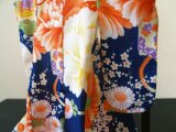 濃い青色の華やかな子供の着物からミニチュア着物を作りました。