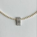 こちらは貝素材の原玉に、オリジナルカラーのパール塗装を何層にも渡り重ね塗りを施した当店オリジナルカラーの日本製貝パールネックレスです。直径約4mmの貝パールで、長さは約40cmと標準的なプリンセスサイズのやや短めになっています。フォーマルにも普段使いにとお使い頂けるパールネックレスです。※ラインストーンが散りばめられたスクエアのビジューを中央に配置することで、シンプルながらも上品なネックレスに仕上がりました。