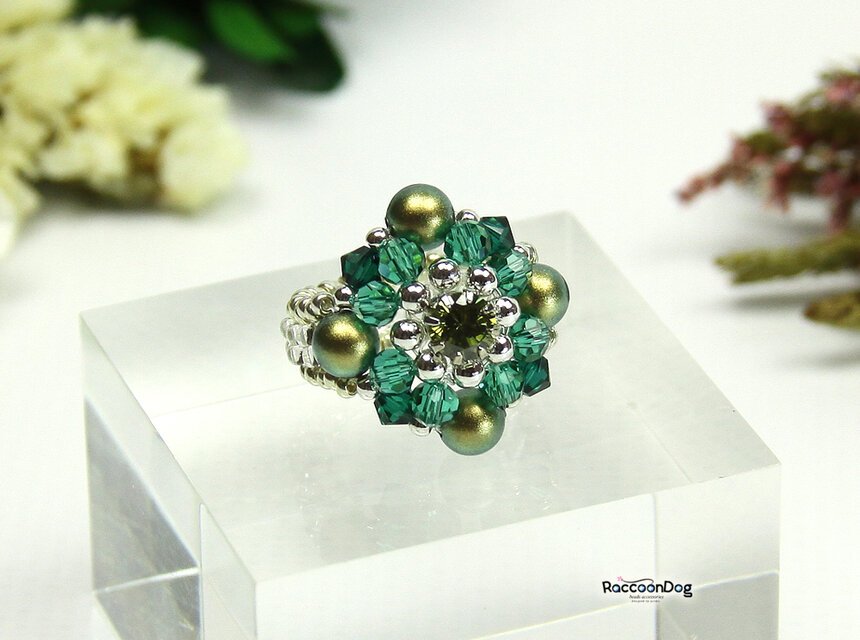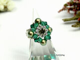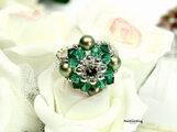 ビーズ,リング,コスチュームジュエリー,ビーズアクセサリー,ビーズリング,ビーズ指輪,エメラルド,クリスタル,スワロ,ジルコニア