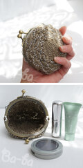 編みがま口の軽量さと、ビーズの輝きを両方取り入れた作品です。