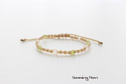 約4㎜と小ぶりな2種類の天然石をコードで繋いで仕立てたシンプル&スリムなブレスレットです。