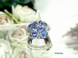 煌くオーロラお花のリング(ライトコバルトブル)【チェコビーズ ビーズリング】《ビーズアクセサリー》