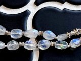 宝石質の美しいレインボームーンストーン(ホワイトラブラドライト)をシルク糸で結びながらつなげていったネックレスです。