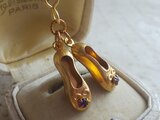 おそらく1960年代頃のヴィンテージ、可愛らしい真鍮製バレエシューズのペンダントでお作りしましたネックレスです。