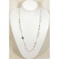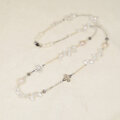 本真珠(淡水パール)と貝パーツ、ムーンストーン、ラブラドライト、SV925のロングネックレス(さざれ、黒蝶、ロジウム)