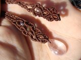アフガニスタン産の天然石(パワーストーン)クンツァイトをロウビキ紐を使ってマクラメ編みしたネックレス(ペンダント)です。