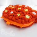 ポピーの花がぎっしり集まったような編み地は、ふんわりとした手触りです。