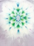 中央に幻想的な曼荼羅模様を染め上げ、全体を優しいラベンダーカラーで包み込みました。