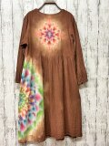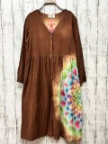 タイダイ染め 前開きのロングワンピース 落ち着いたブラウンに幻想的で華やかな大曼荼羅 HD17-1