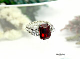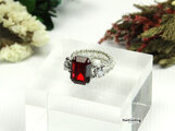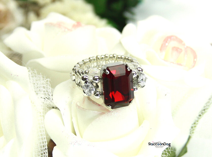 スワロ・真っ赤なシャム・エメラルドカットリング【スワロ/ジルコニア ビーズリング】《ビーズアクセサリー》
