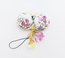 可愛いピンクの花タッセルとロンデルパールチャーム付き