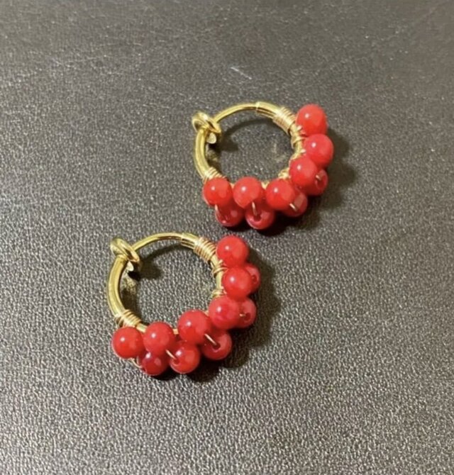 真っ赤なカラーが印象的な赤珊瑚のフープイヤリングです!