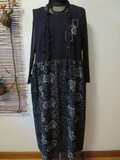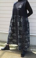 藍染+型染一色のシックでスッキリした配色のジャンバースカートワンピースです。