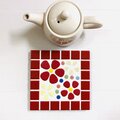 ♪モザイクタイルの鍋敷 花柄~赤