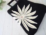 丁寧に刺繍糸でバッグ地に一針一針、縫い付けて仕上げました。