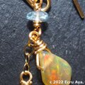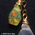 下にチェーンを繋ぎ、宝石質エチオピア産プレシャスオパールのラフスライスを正面に向くように下げました。
