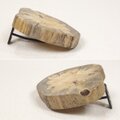 丸太は 厚み 2.2cm、径は 10cm ほどの 奥行が多少長い変形円、棚上は平らです。