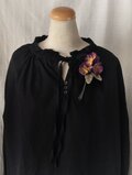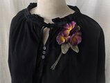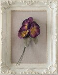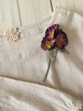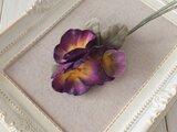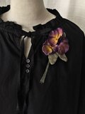 中心をイエローに染めたムラサキのパンジーを3輪まとめたコサージュ。