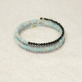 爽やかなグリーンブルーのアマゾナイト、明るいメタリック調の輝きのテラヘルツ、細かな輝きのブラックスピネルのブレスレットです。