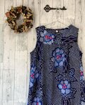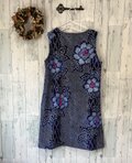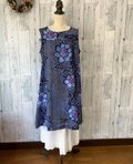 ☆ 有松絞 Aラインワンピース 藍・青に濃い桜色の花 浴衣リメイク♪