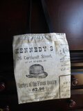 アンティークなポスター柄のようなプリントのブロードコットン地のまちなしのトートバッグです。
