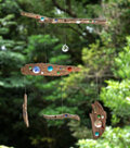 5本の流木にビー玉をはめ込んで作りサンキャッチャーを付けています。