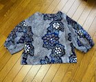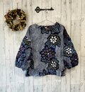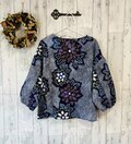 ☆ 浴衣リメイク 藍にくすみカラーの花柄 有松絞りパフ袖ブラウス ♪