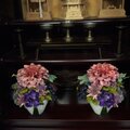 ◇アーティフィシャルフラワーで、白い陶器の花器にアレンジしました1対の仏花です。