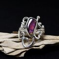 光の当たる角度によって、メタリックな輝きが浮かぶスペクトロライトを唐草粒のリングに仕上げました。