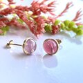 スター効果を持つ可愛らしい色合いのスターローズクォーツ の1粒ピアス♪