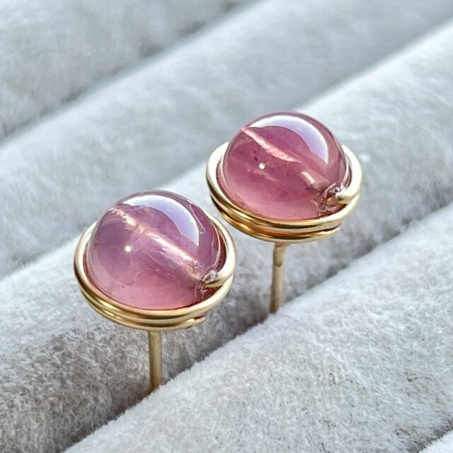 スターローズクォーツ 1粒ピアス スター効果 14kgf