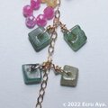 ピアスパーツにチェーンを下げ、コーティングムーンストーンとジルコニアでペアシェイプをお作りして、百日紅の花をお作りしました。