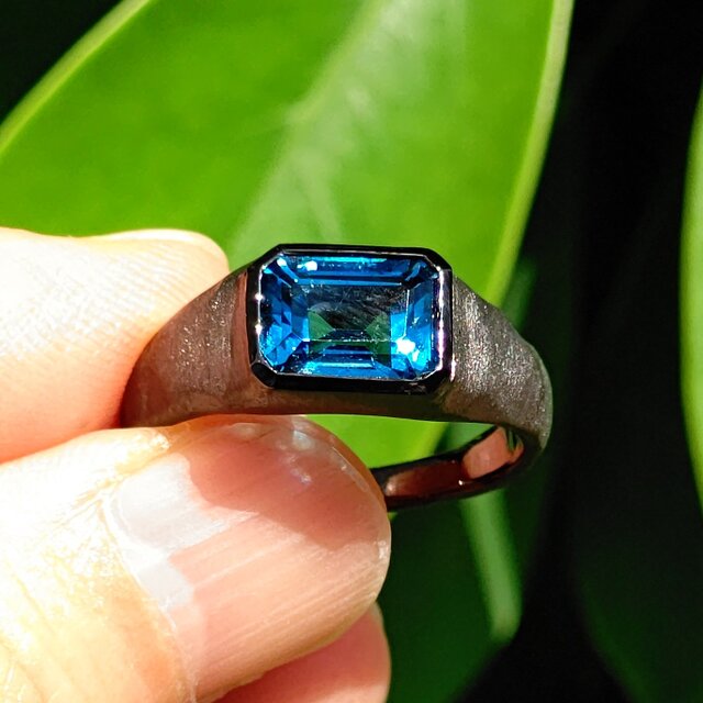 ロンドンブルートパーズ オクタゴンカット 印台 ブラックメッキ