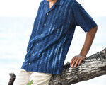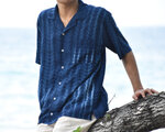 メンズタイダイ柄オープンカラーシャツ 開襟シャツ アロハシャツ ネイビー