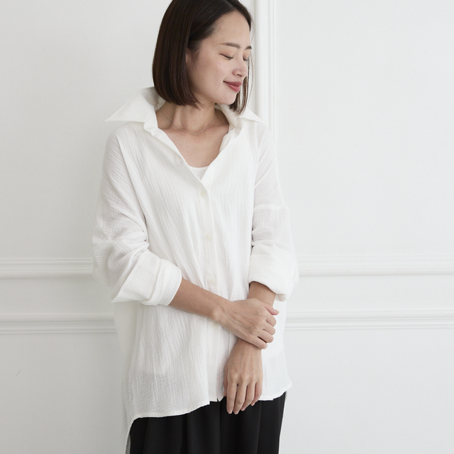 柔らかサラサラ素材✨ 羽織る コットンダブルガーゼ シャツ ホワイト 0699WH