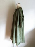 全体的にゆったりとしたサイズ感で、衿を紐で絞って、ギャザー寄せをするデザインにしました。